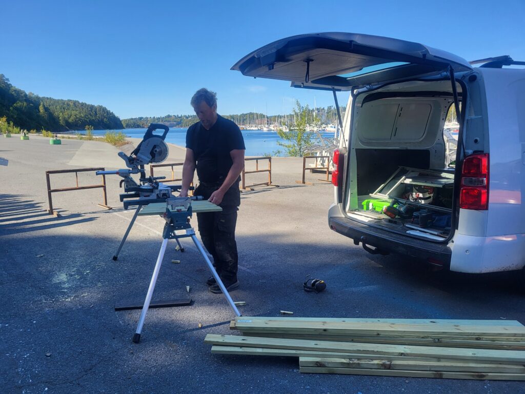 Et lite snekkerverksted førte til at nye benkebord kom raskt og fagmessig på plass.