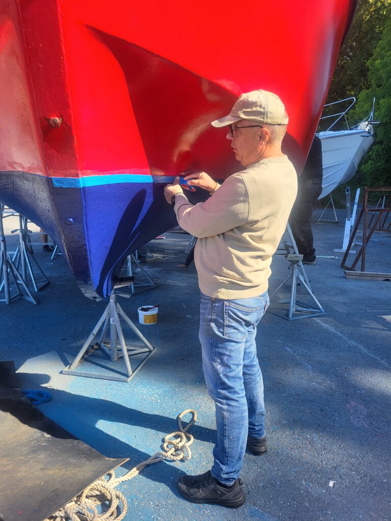 - Nytt strøk med rødt malt over vannlinjen